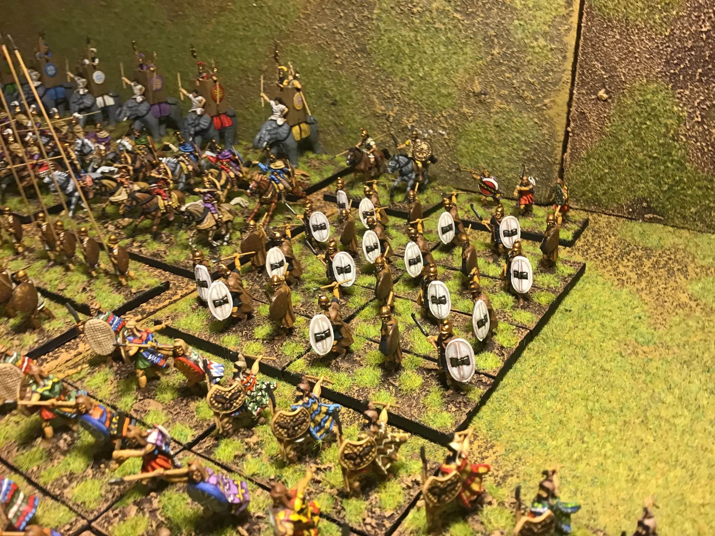 Contains 234 foot figures, 46 cavalry figures & 8 elephants arranged in the following configuration of elements or stands: